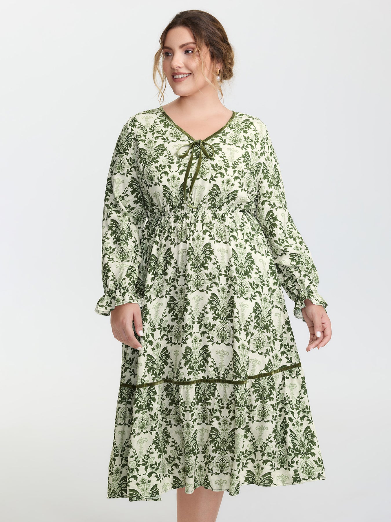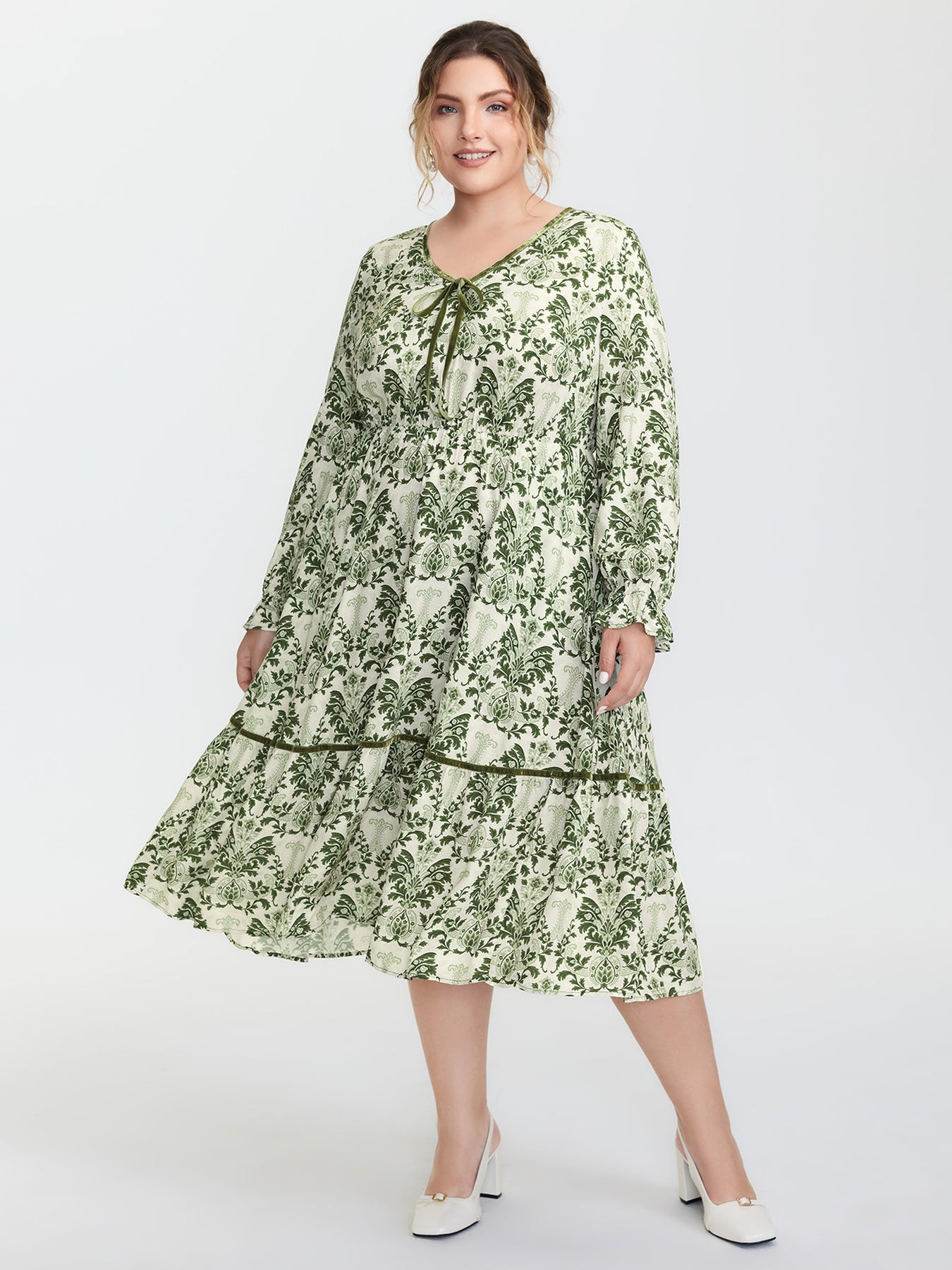 Boho Print Color Contrast Midi Dress