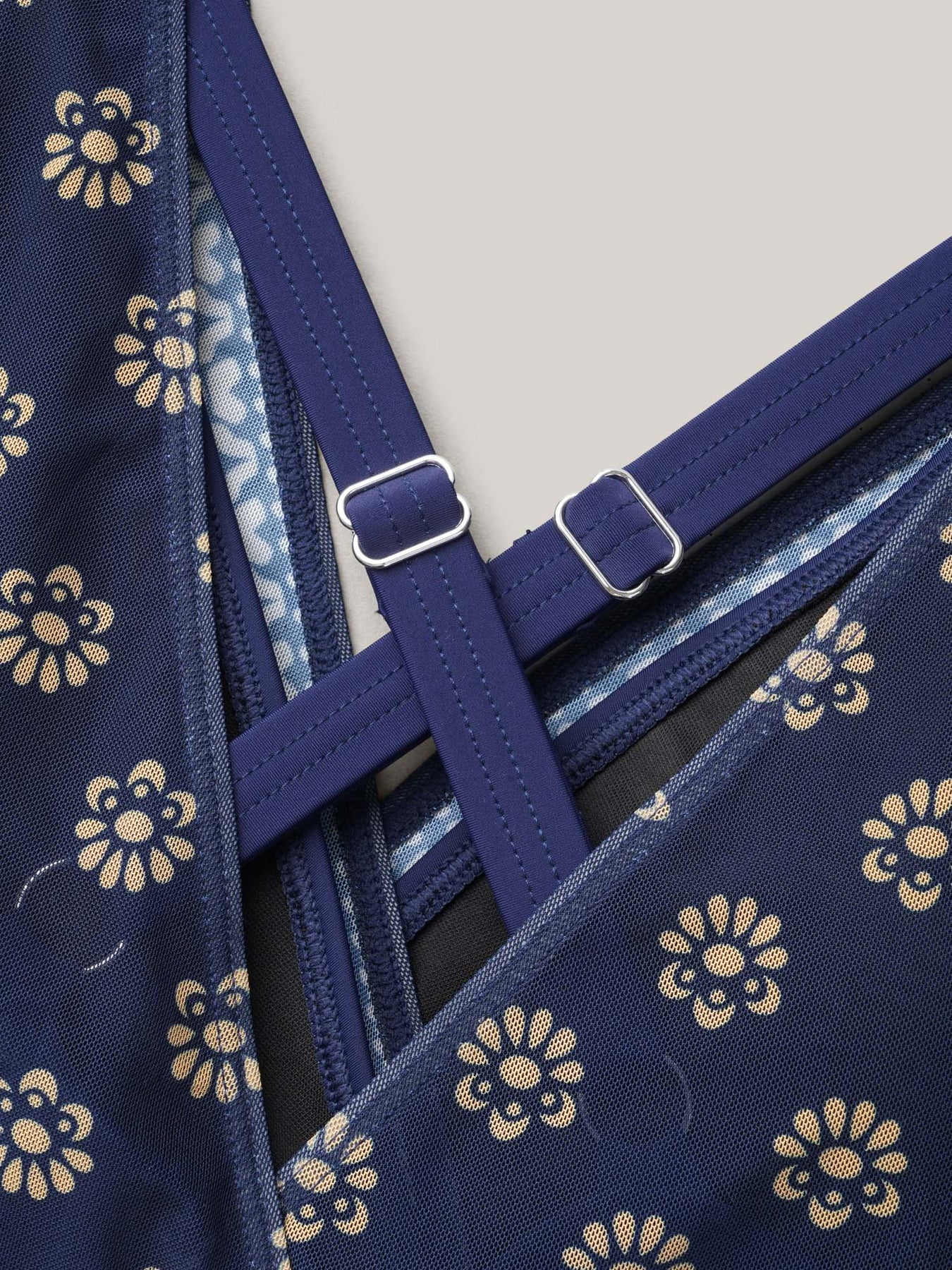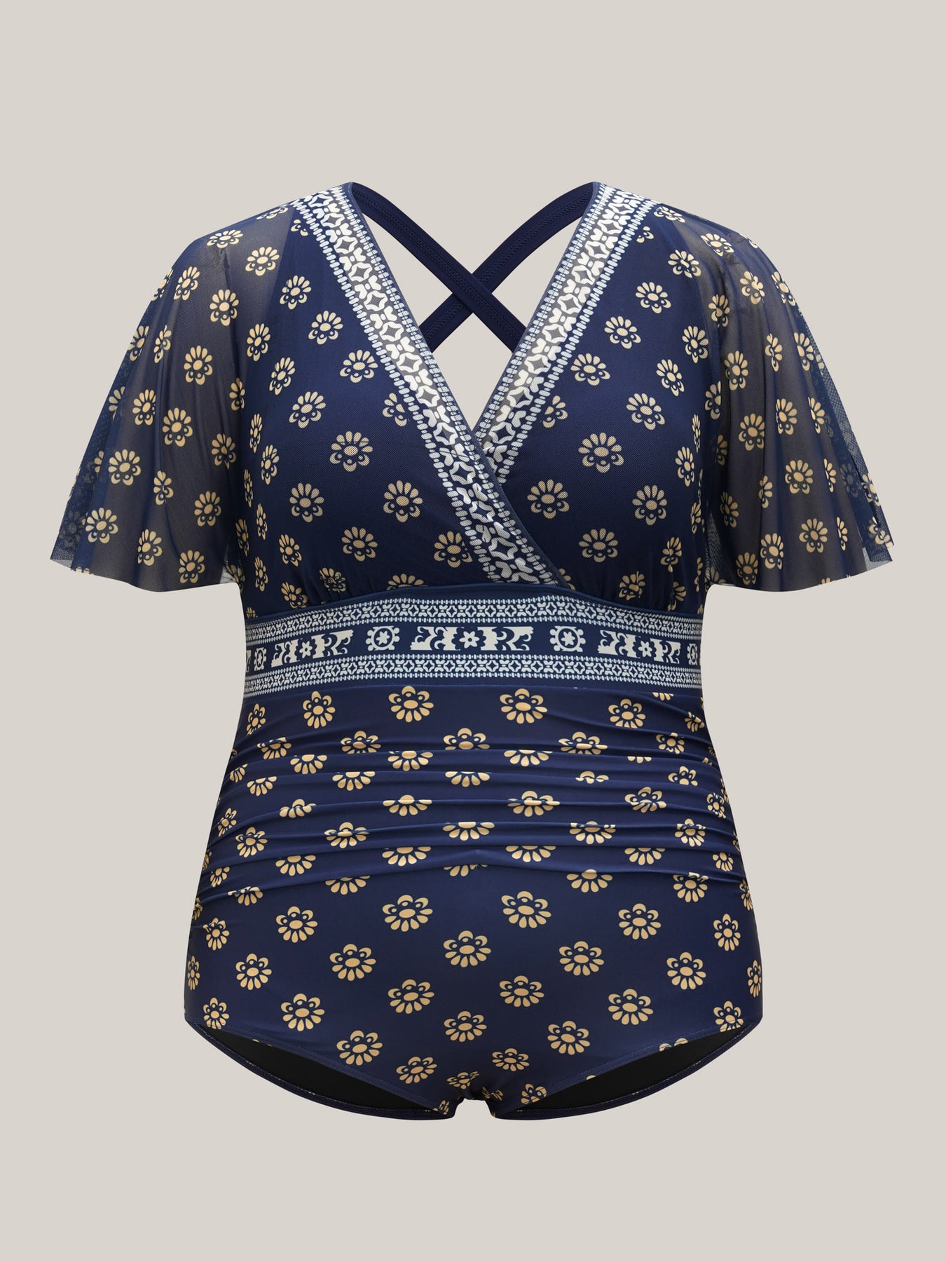 Boho Print Mesh Ruched Crisscross One-Piece Swimsuit