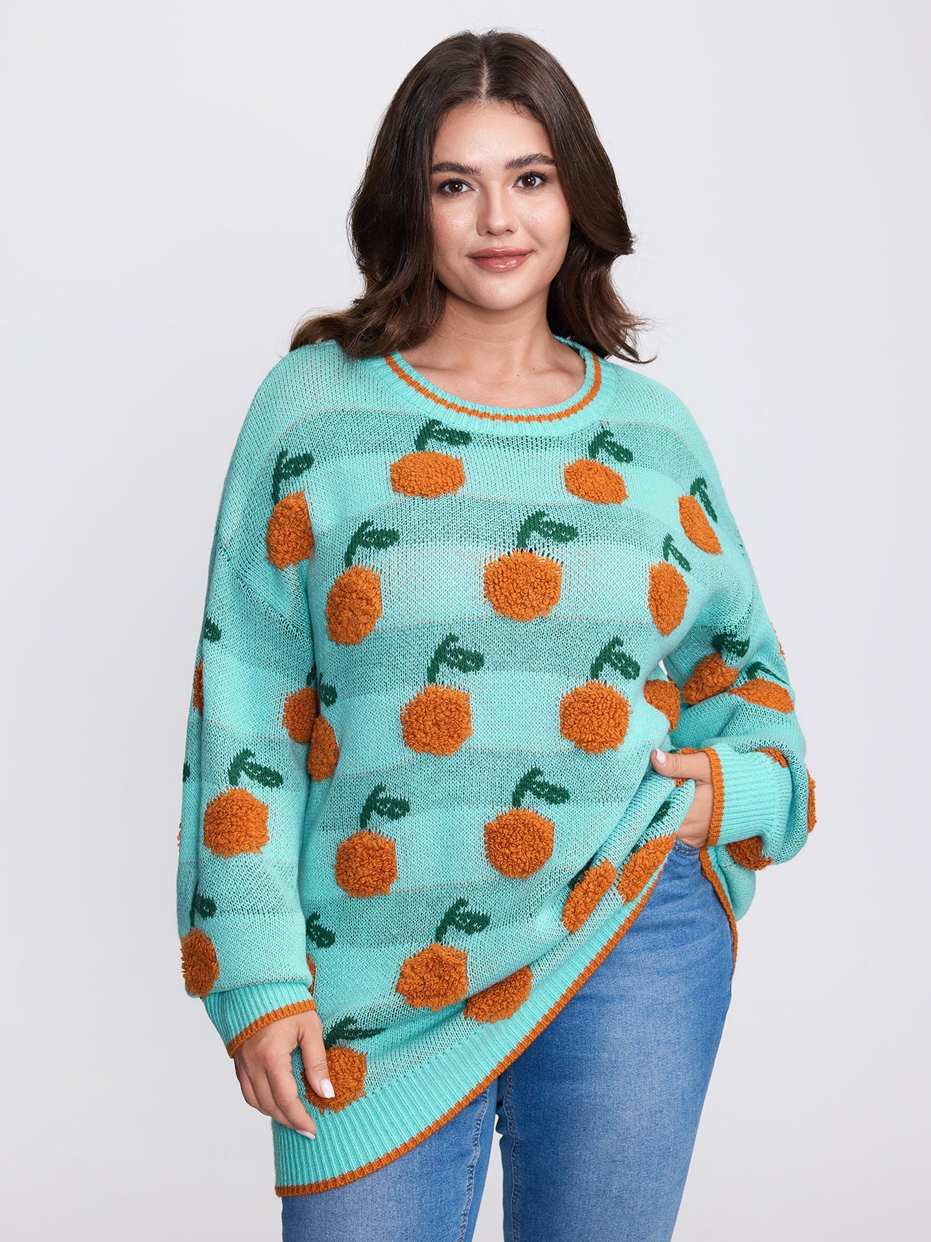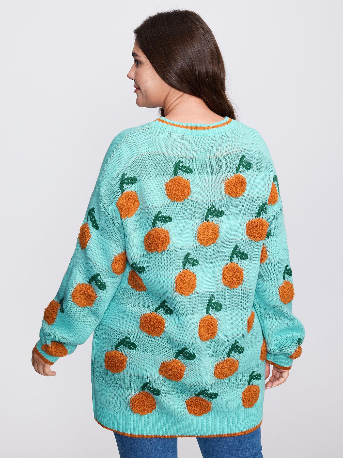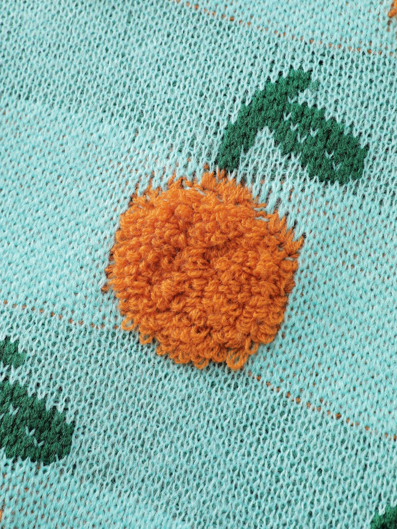 Citrus Pattern Contrast Edge Ribbed Pullover