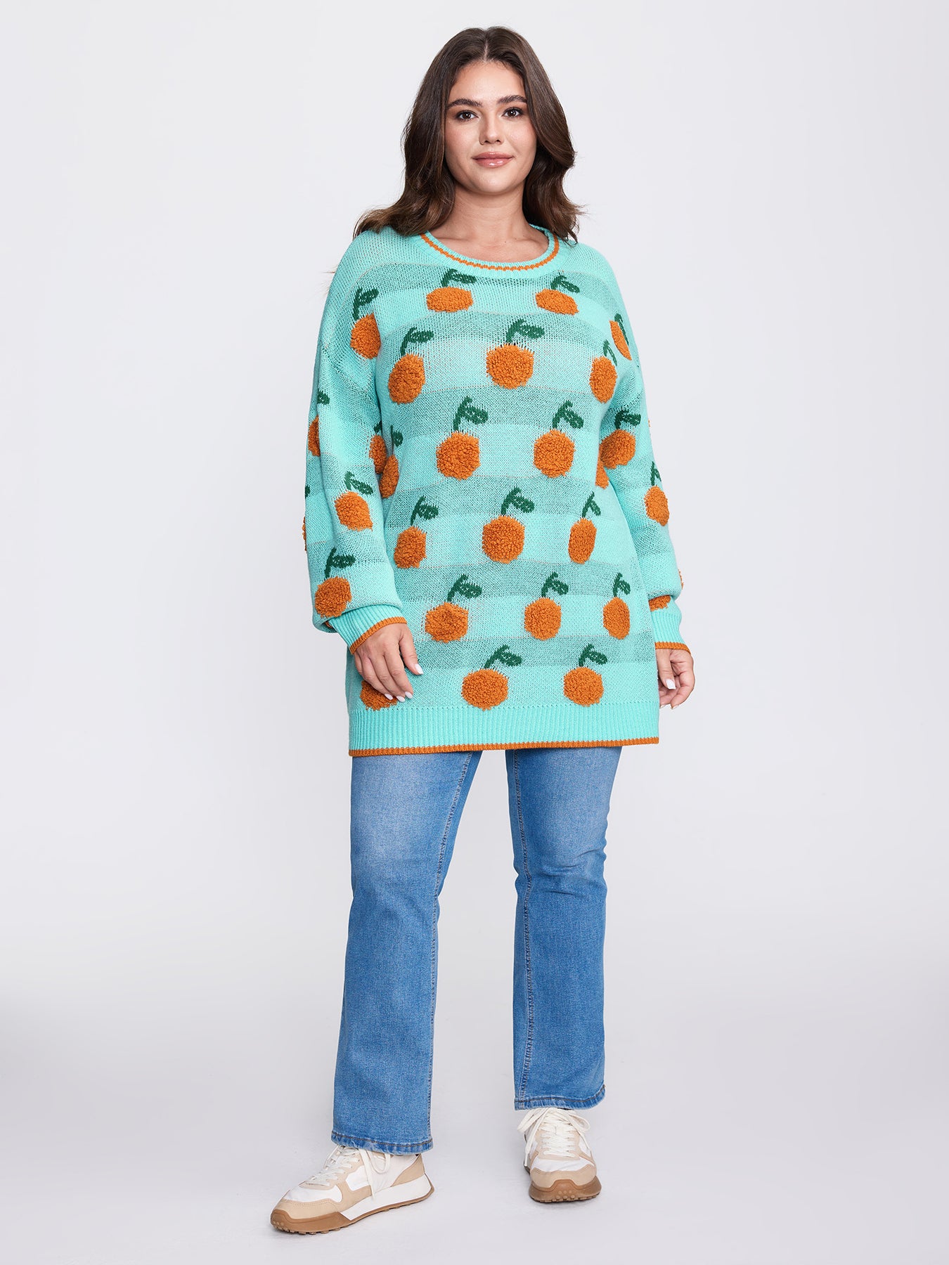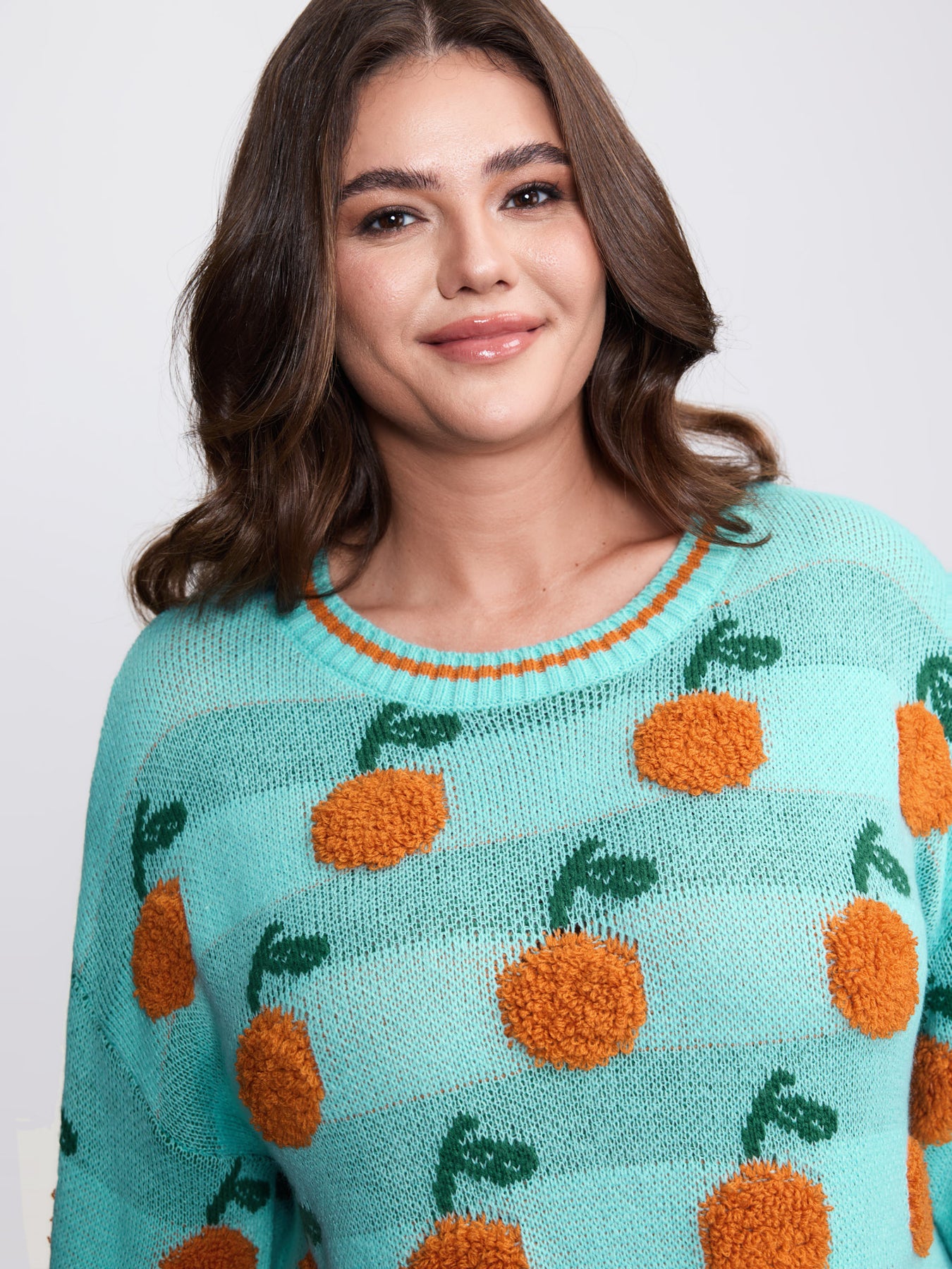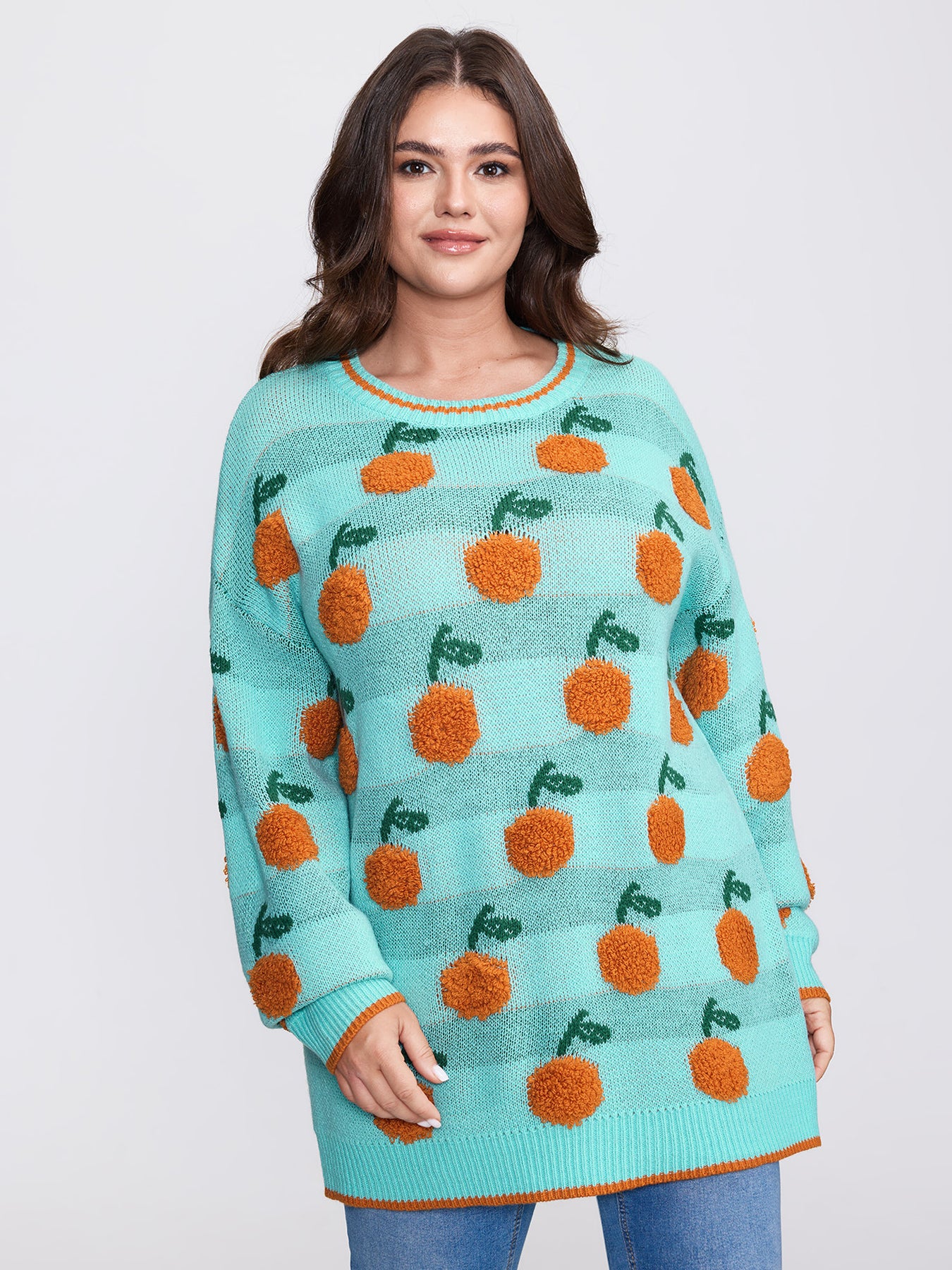 Citrus Pattern Contrast Edge Ribbed Pullover