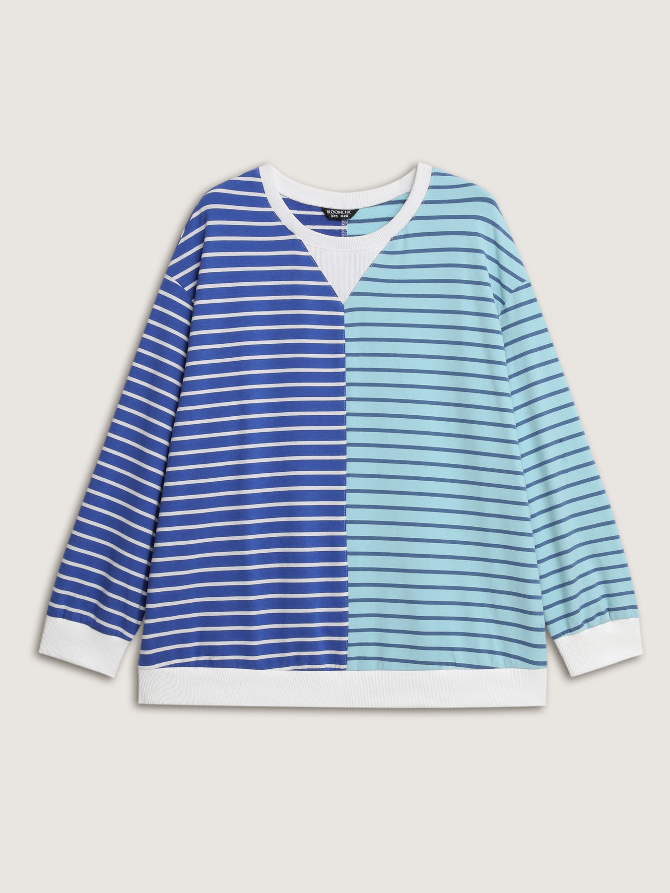 Color Contrast Stripe Print V-Neck Sweatshirt