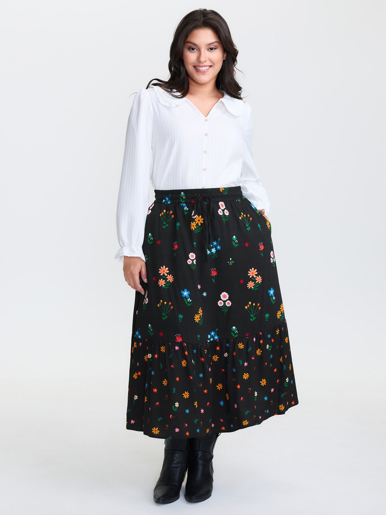 Colorful Floral Print Drawstring Midi Skirt