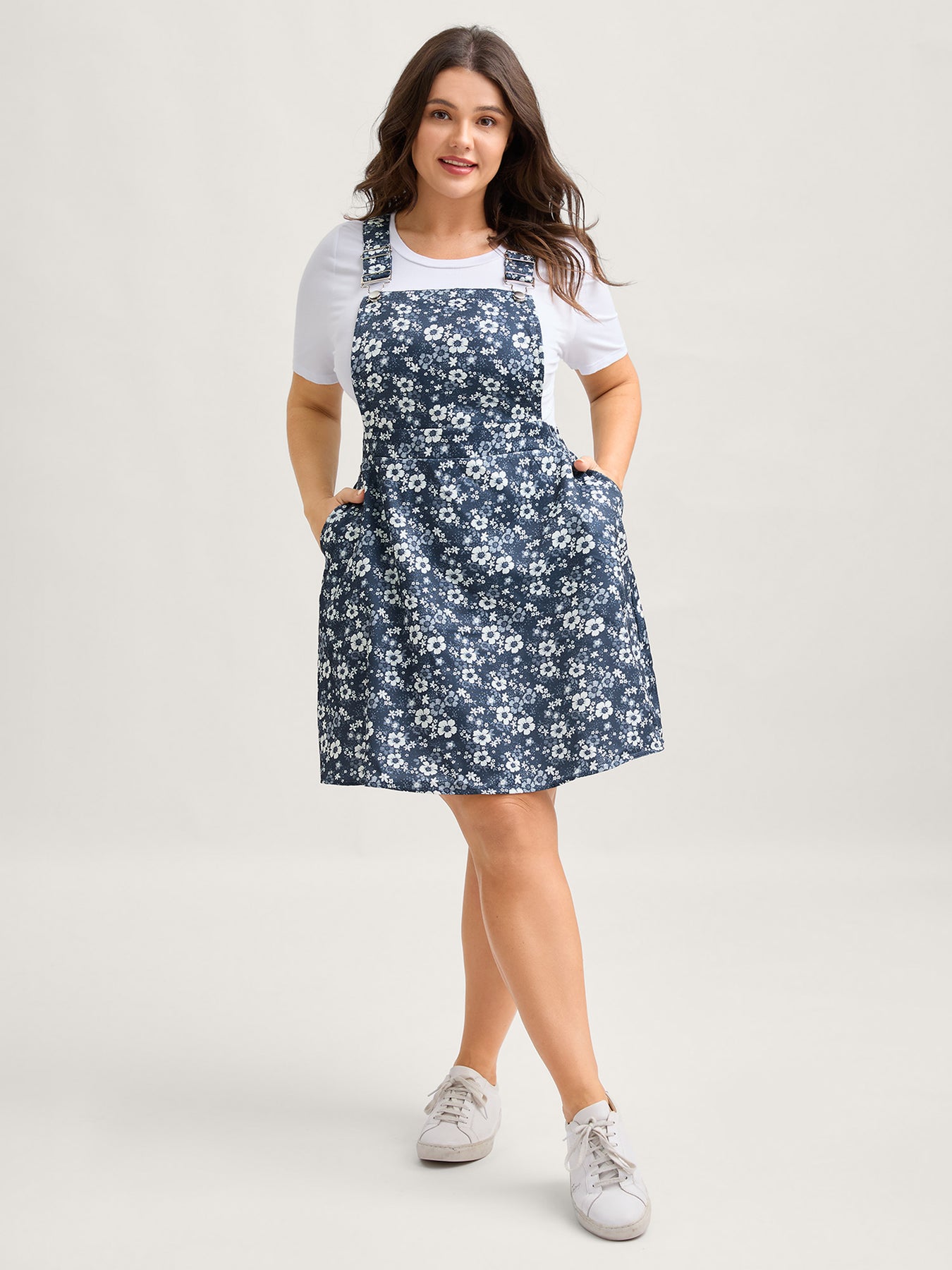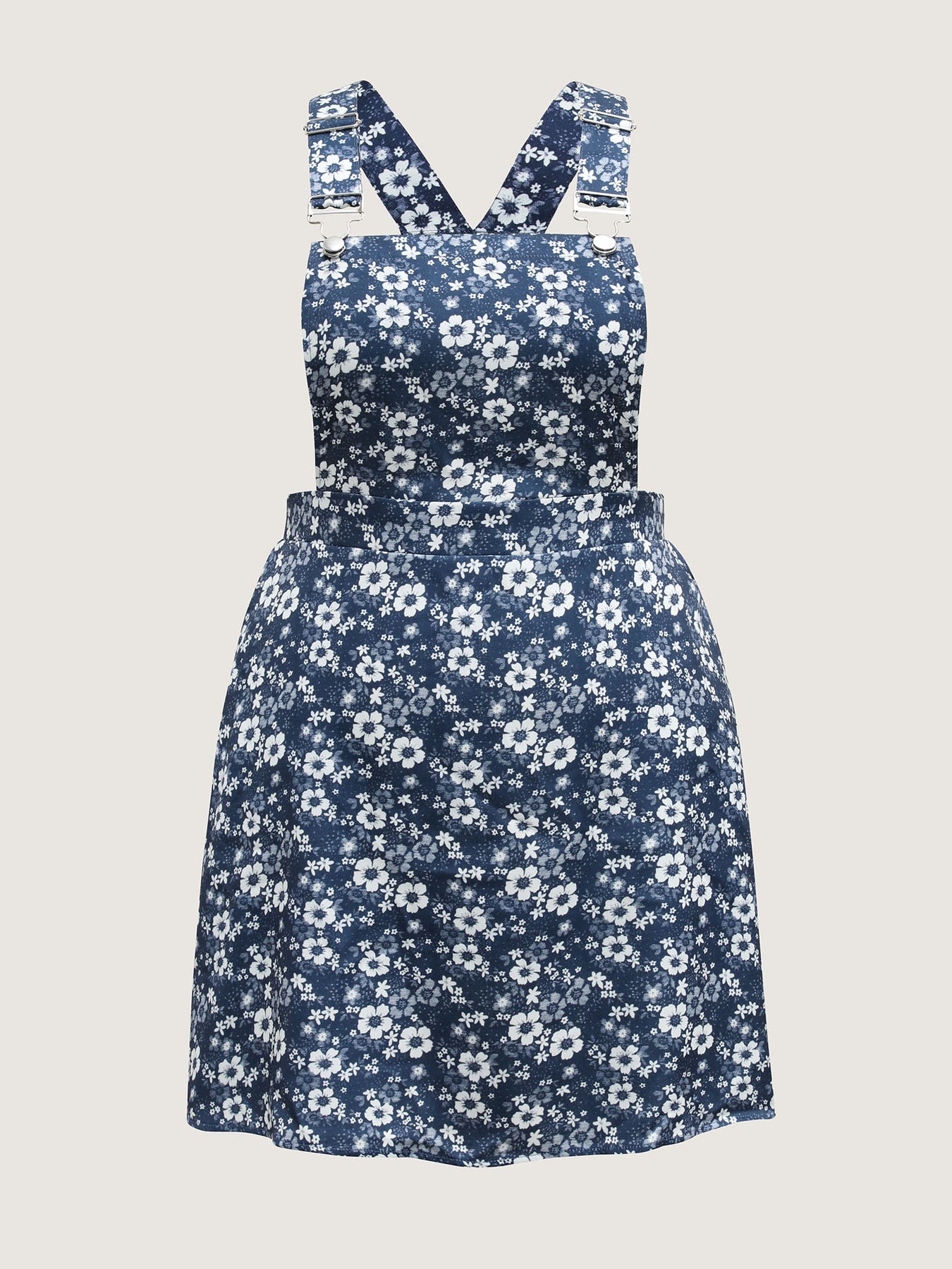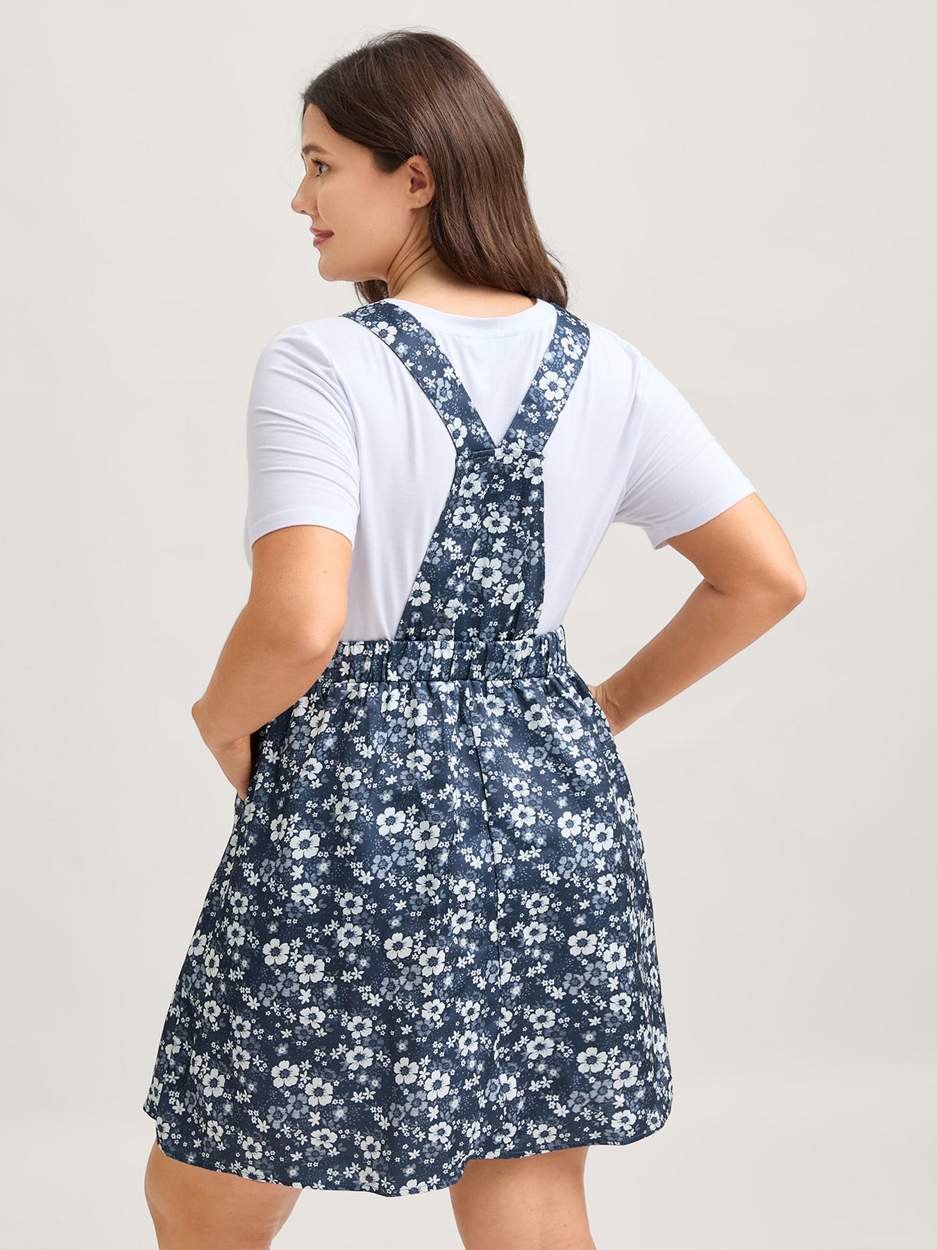 Floral Overall Straps Stretchy Waist Midi Dress