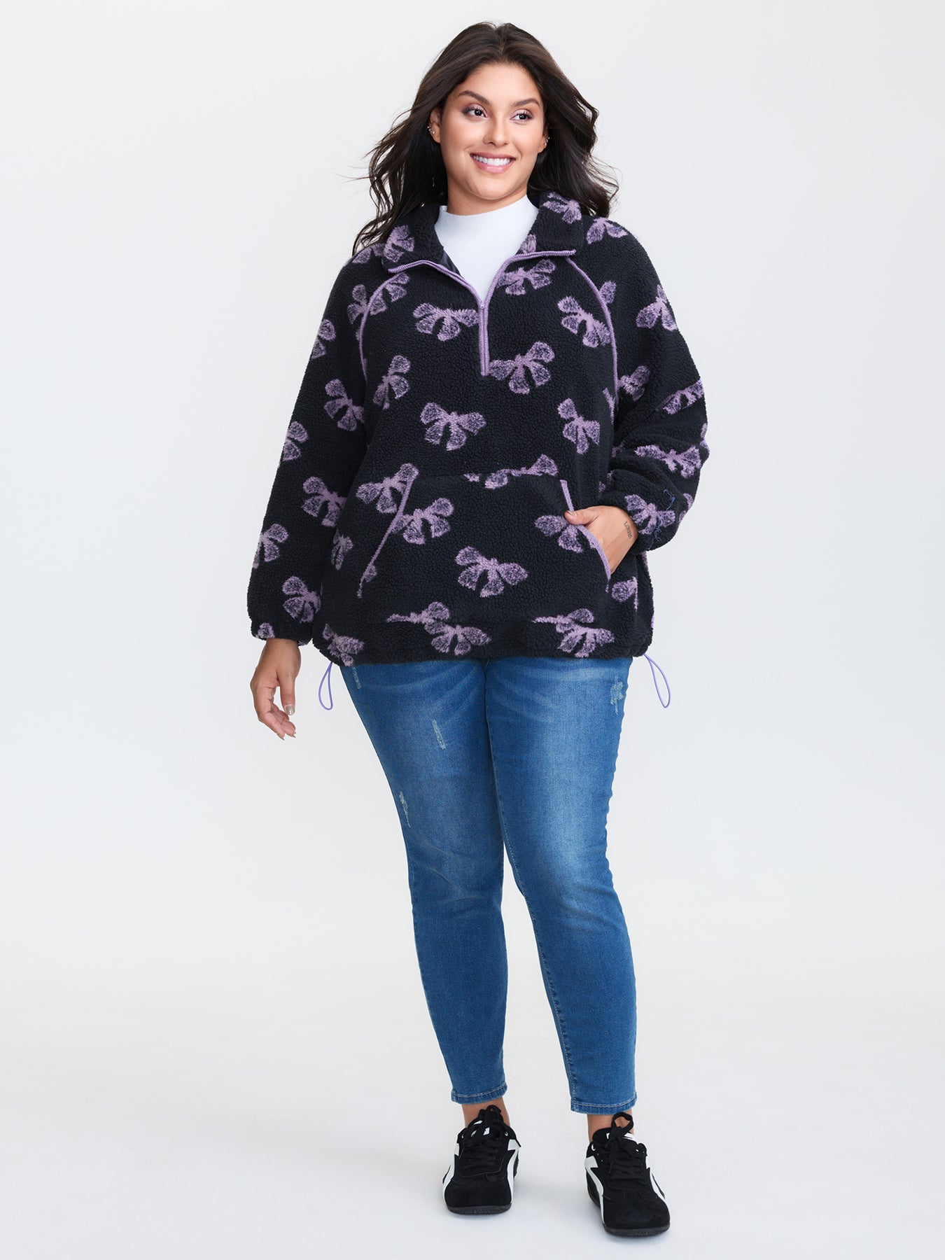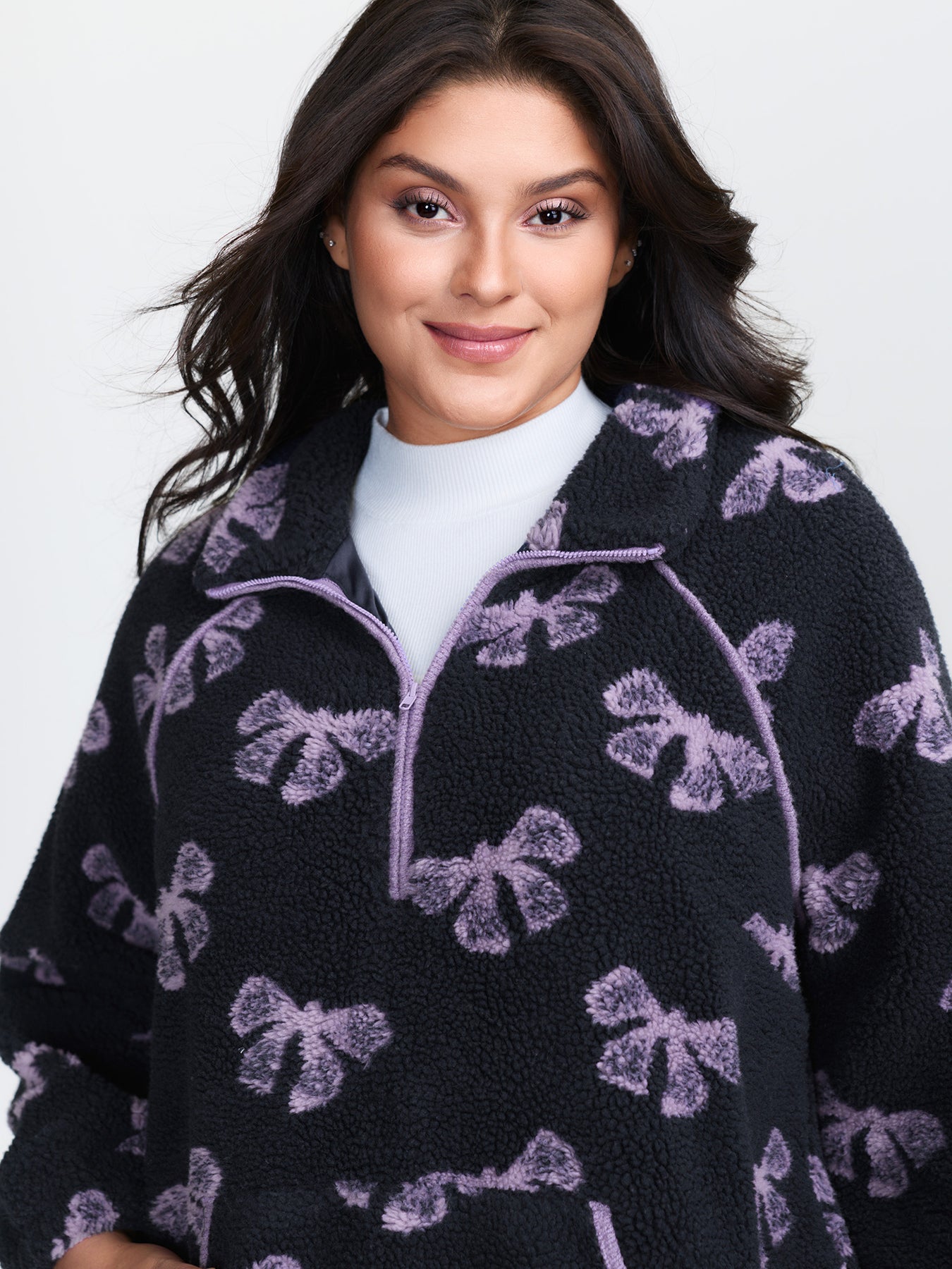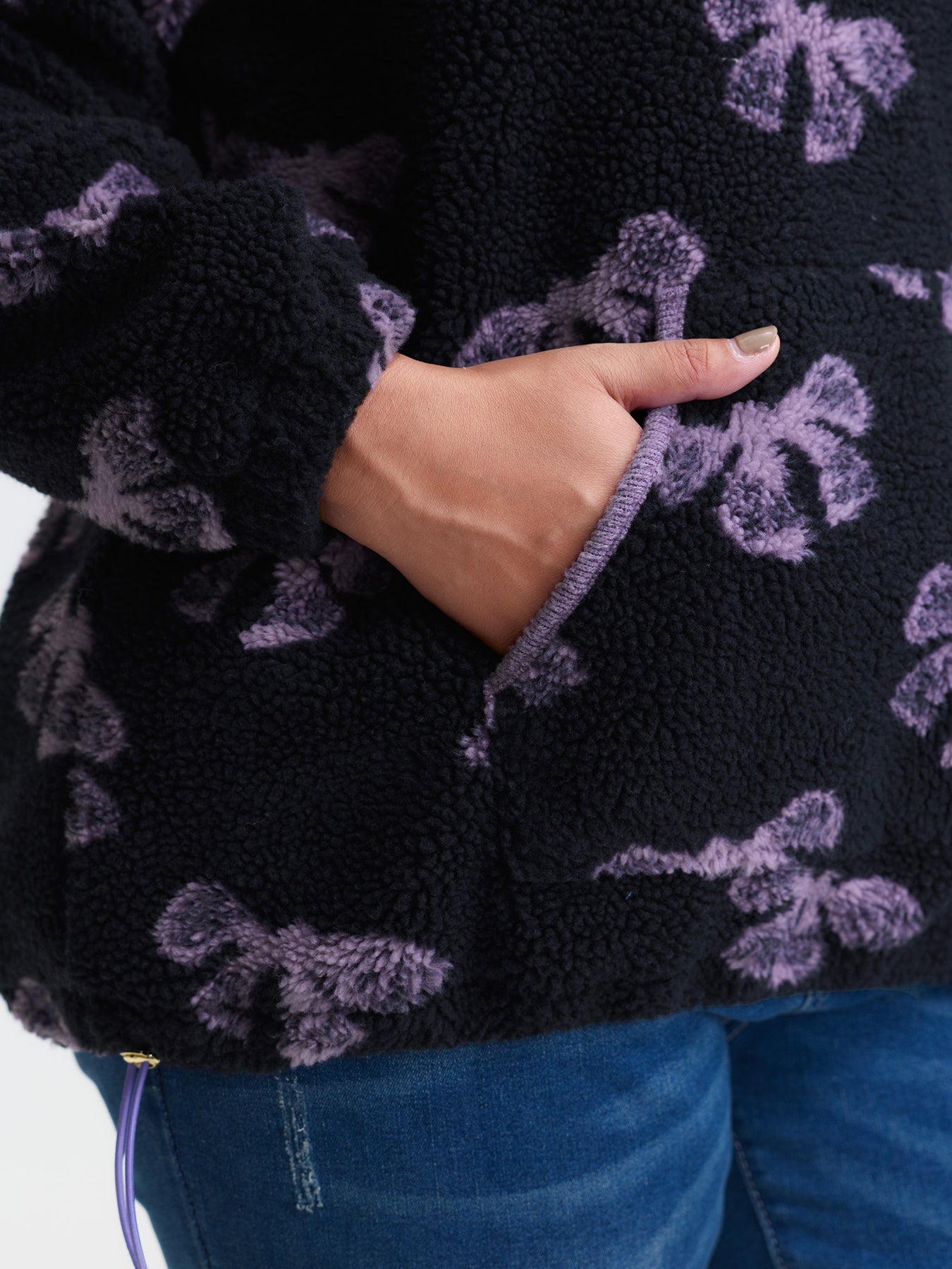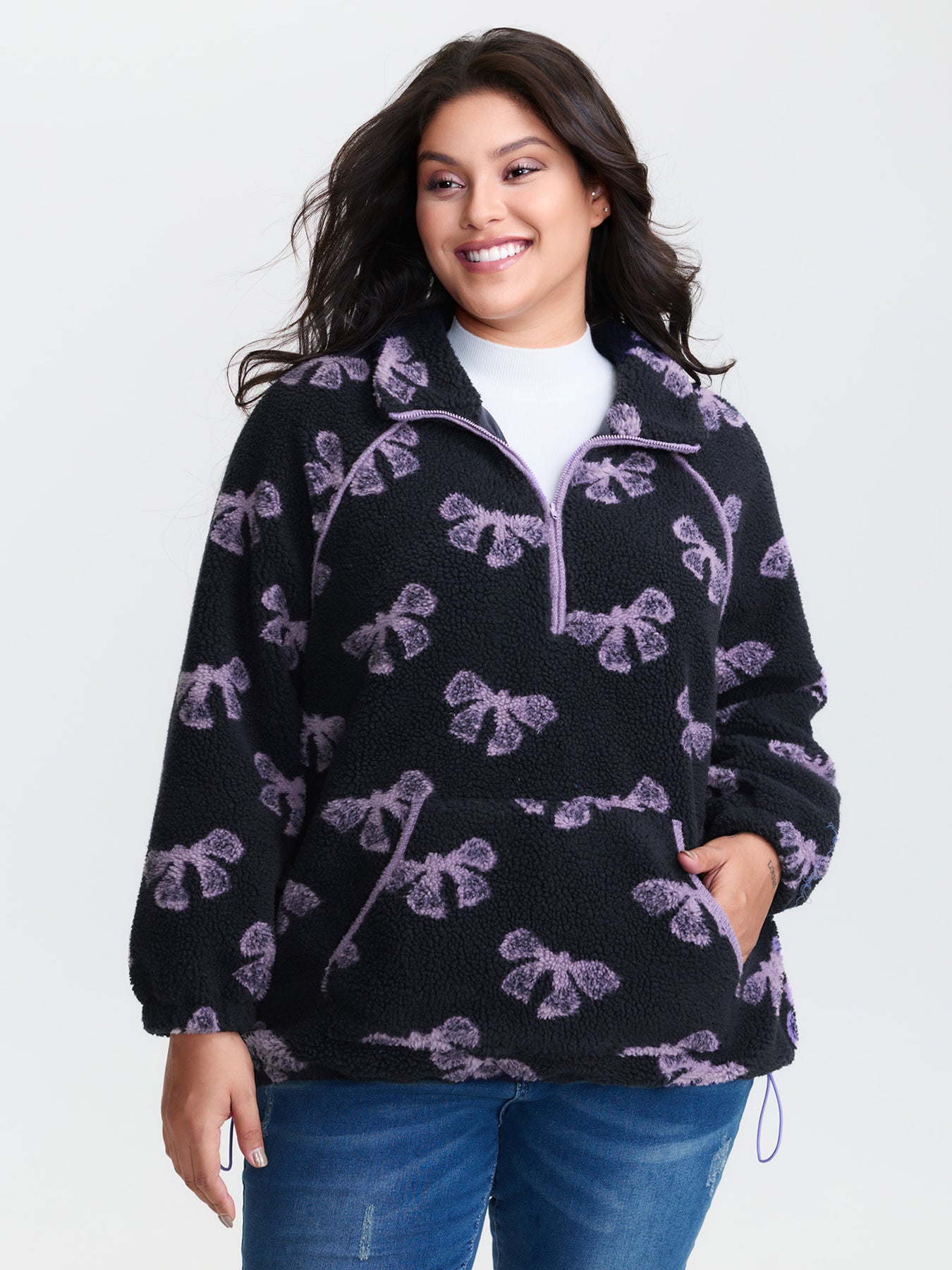Fluffy Texture Bowknot Pattern Adjustable Sweatshirt