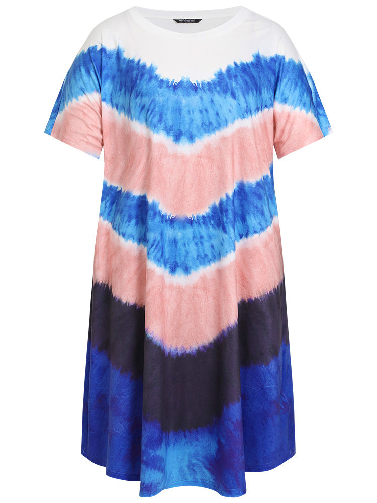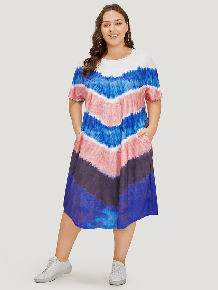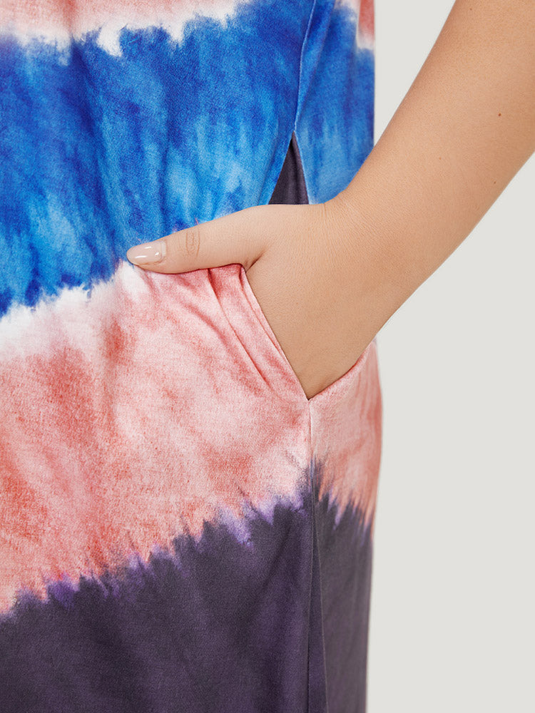 Geometric Contrast Pocket Tie Dye Midi Dress
