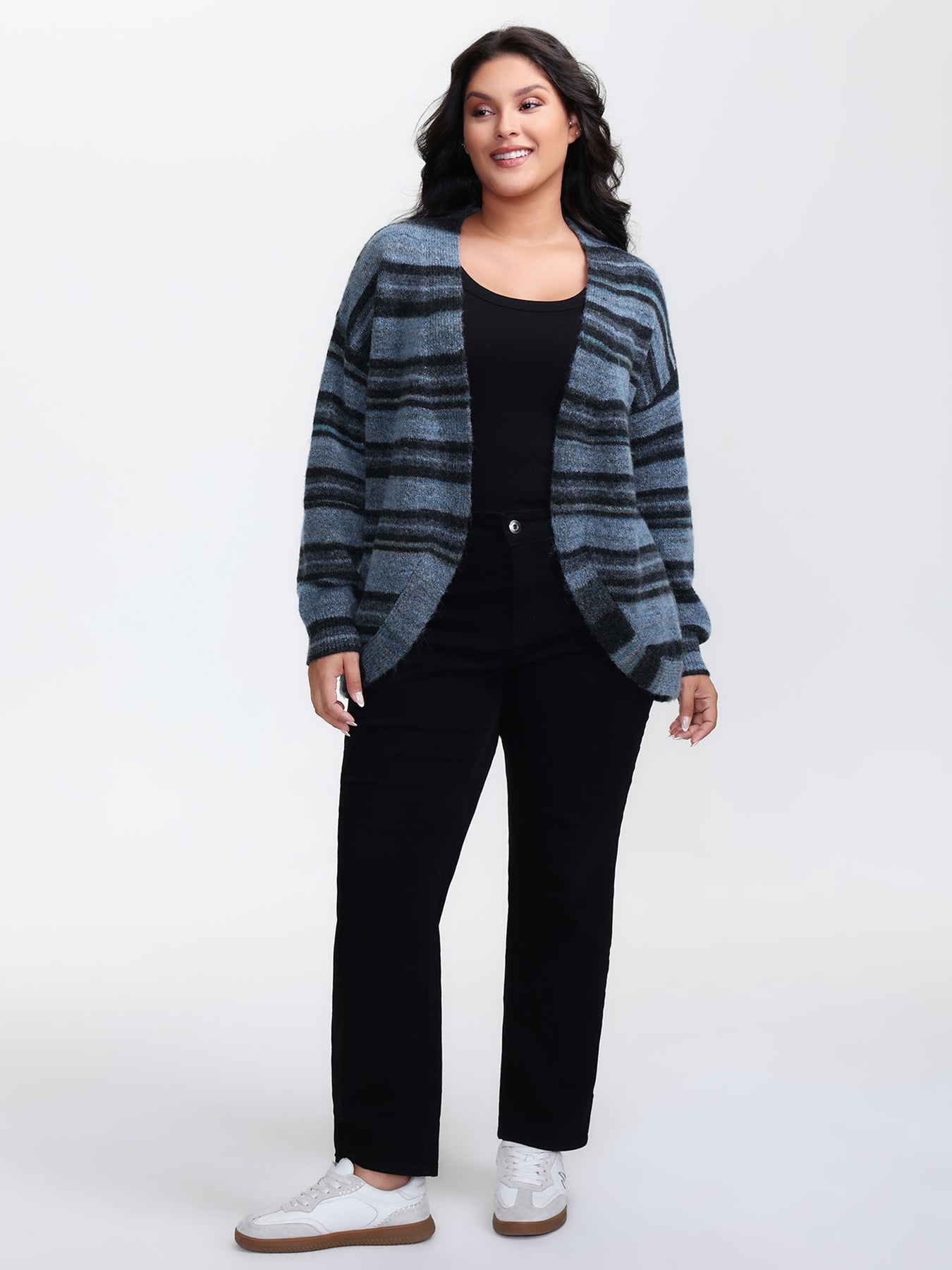 Wool Blend Curvy Hem Knit Cardigan