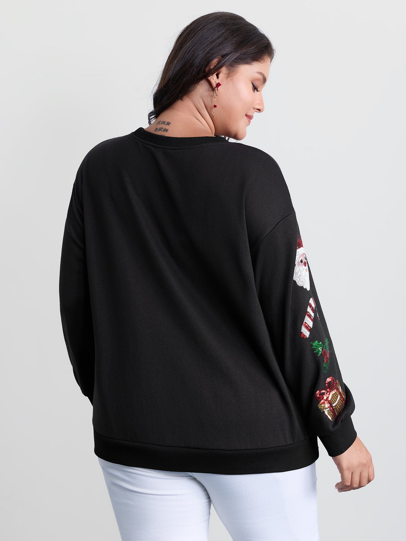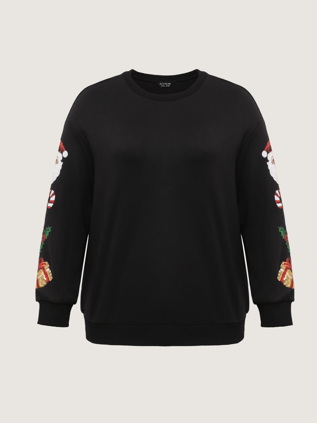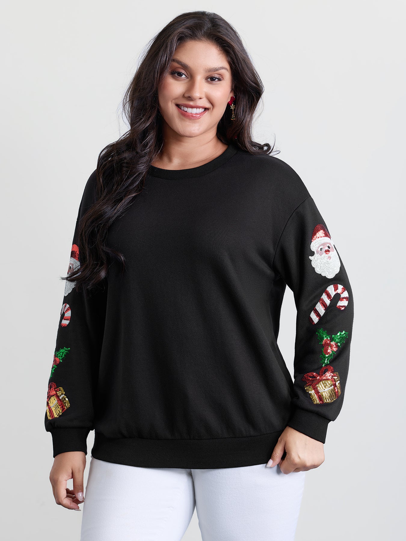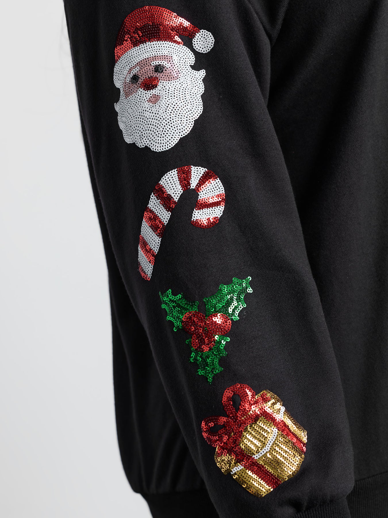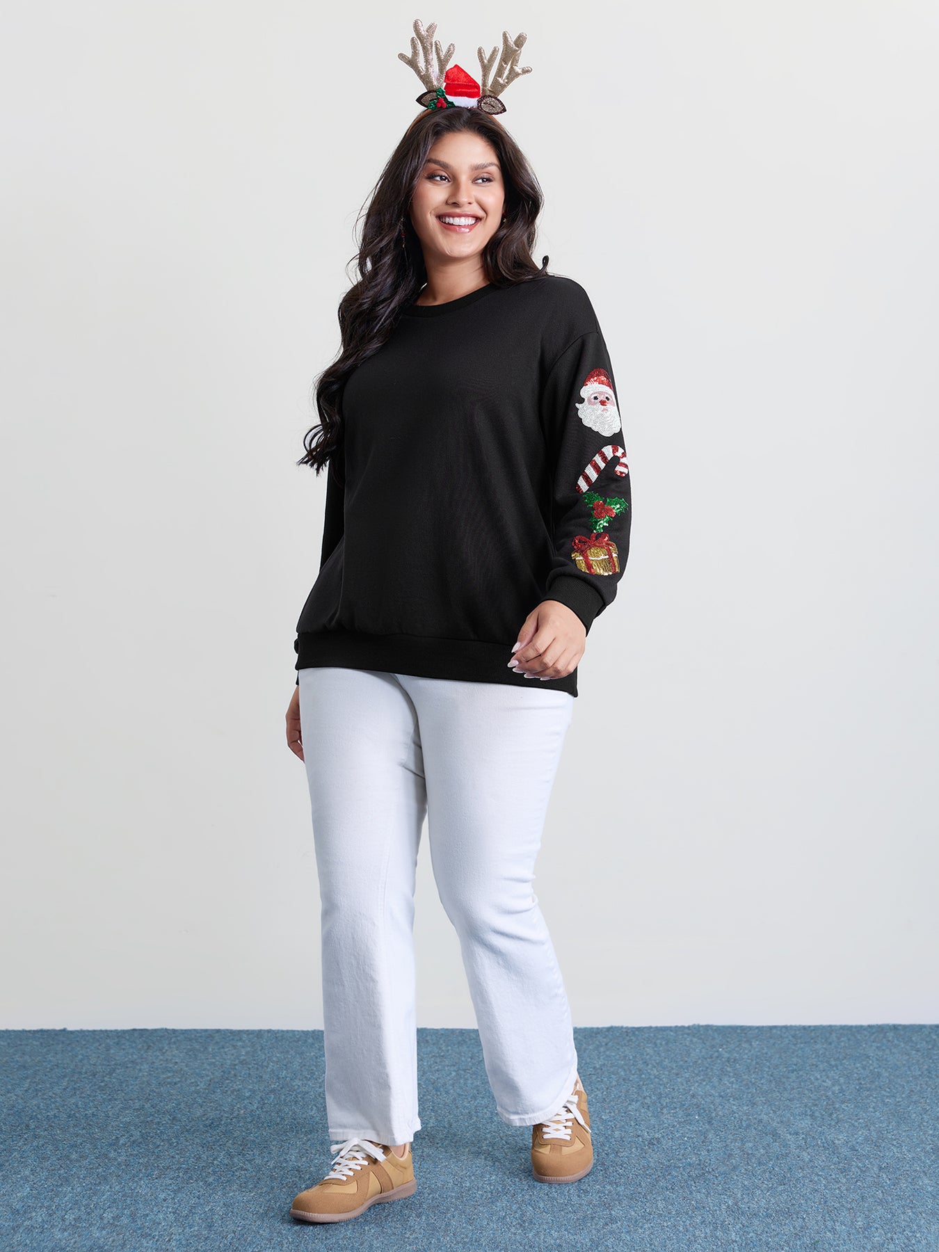 Holiday Sequin Embroidery Relaxed-Fit Sweatshirt
