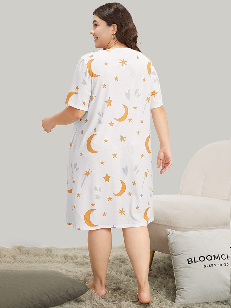 Moon and Star Crew Neck Sleep Dress