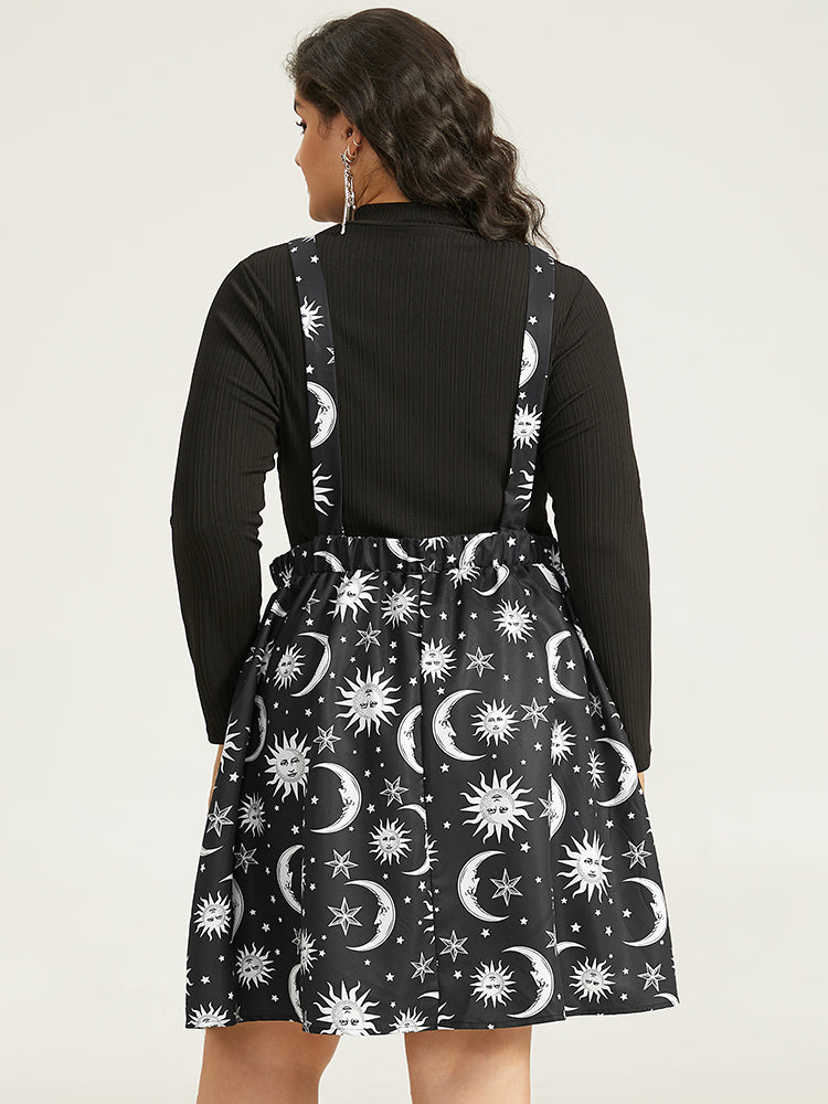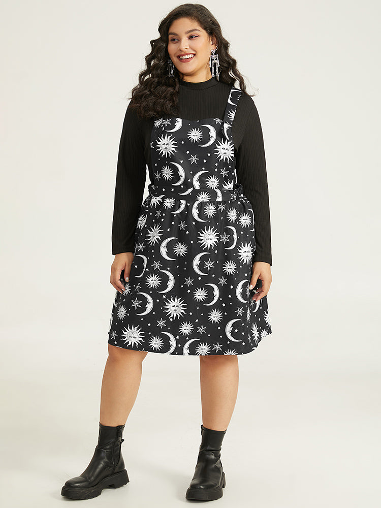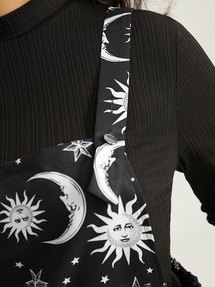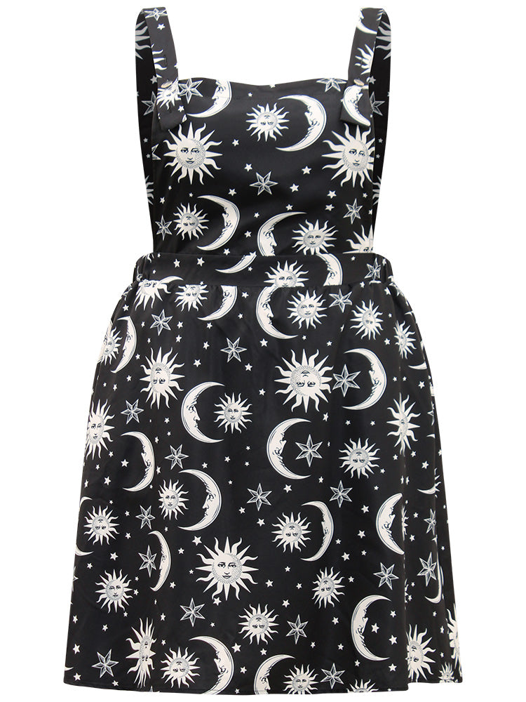 Halloween Moon & Star Print Pocket Spaghetti Strap Dress