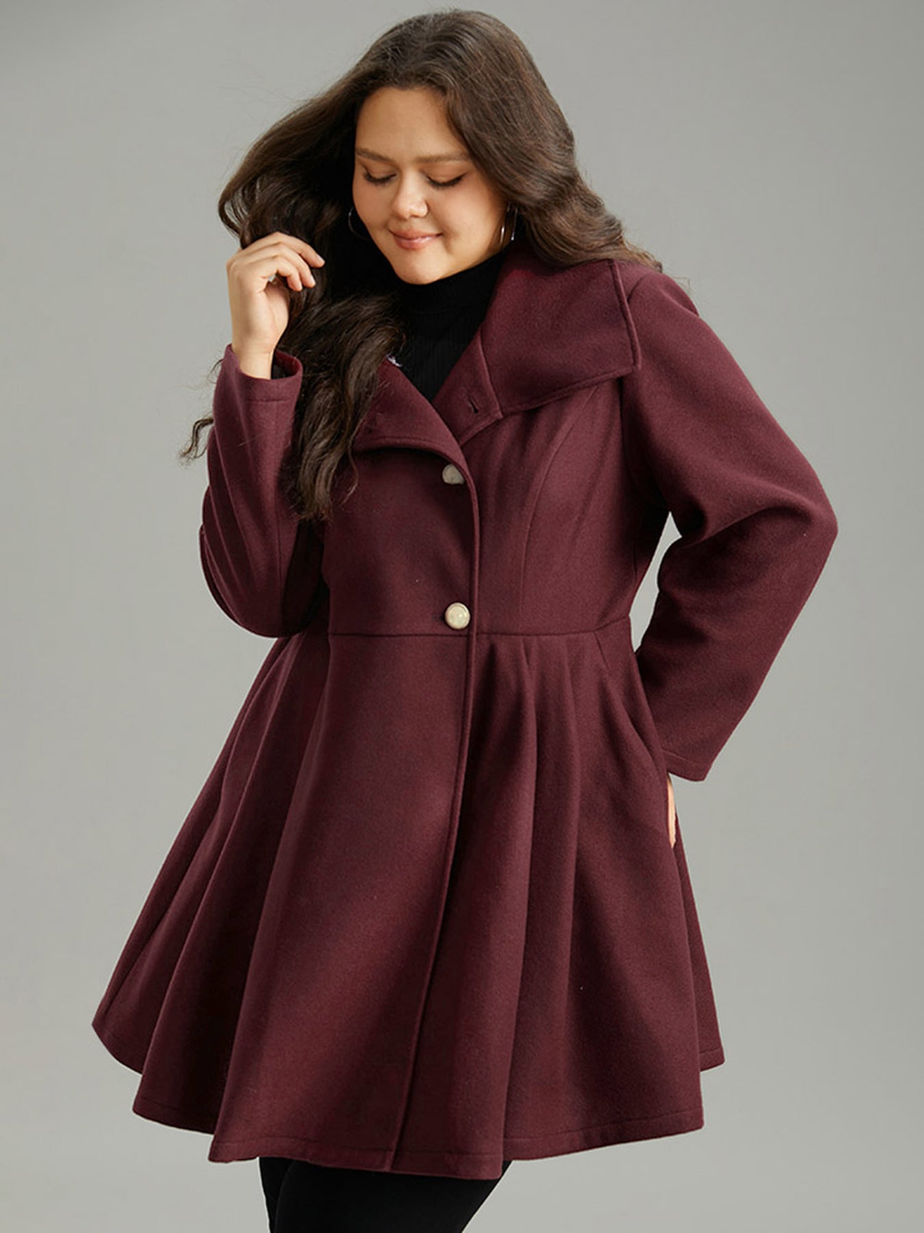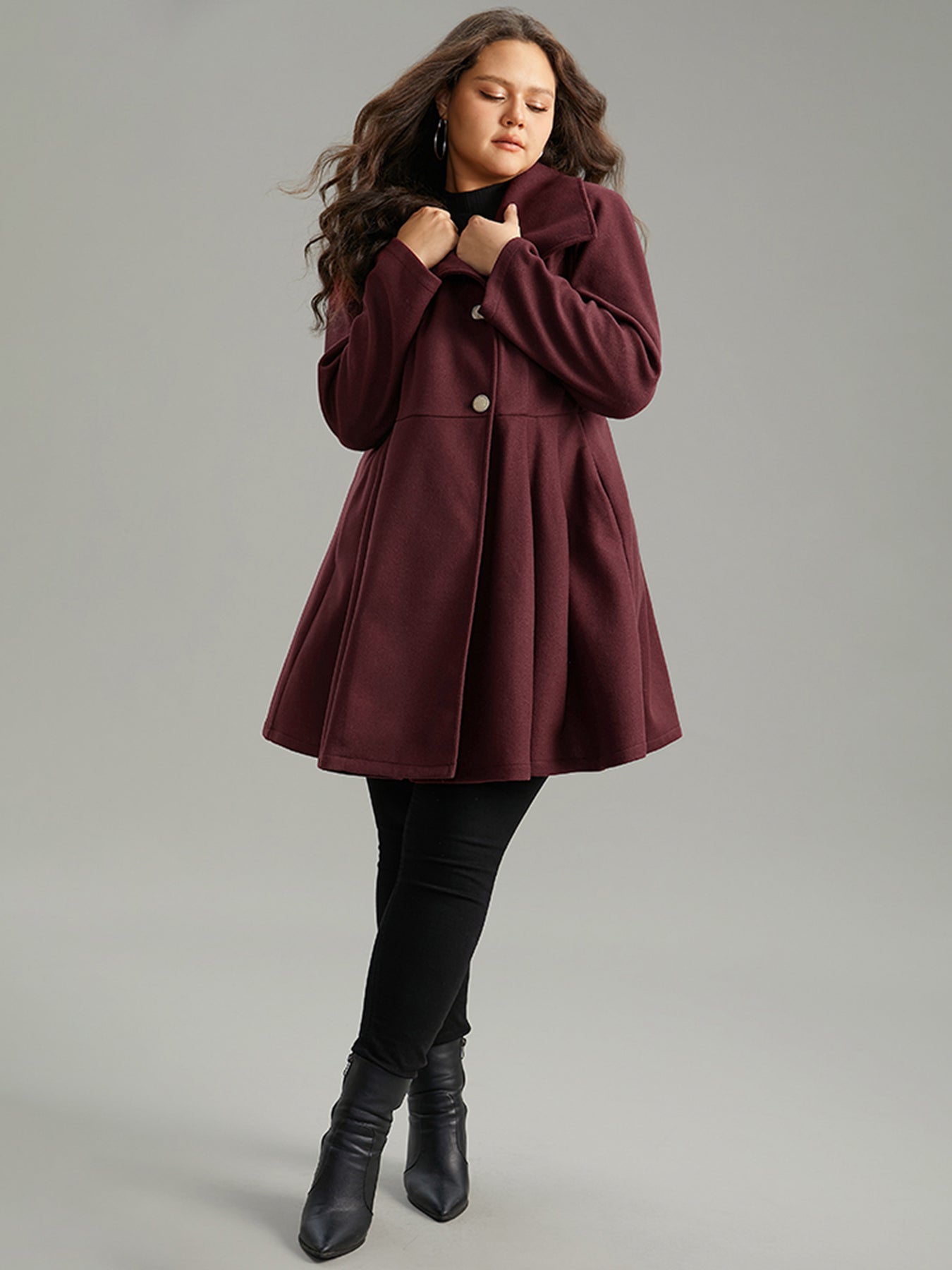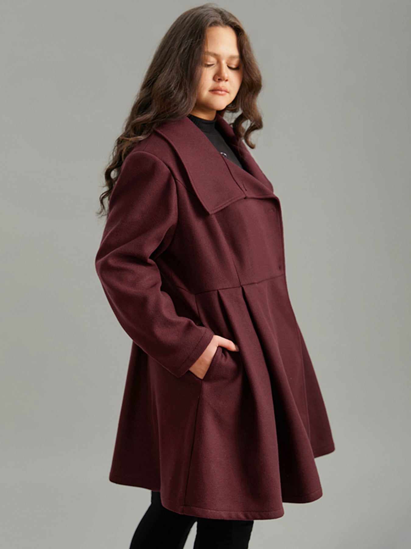 Plain Button Up Pocket Asymmetrical Lapel Collar Coat