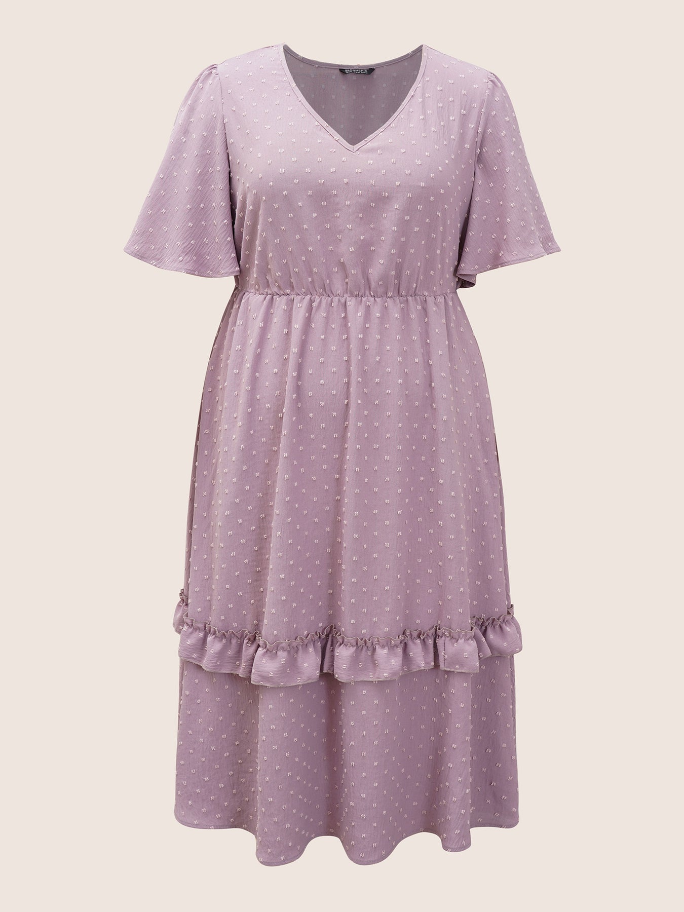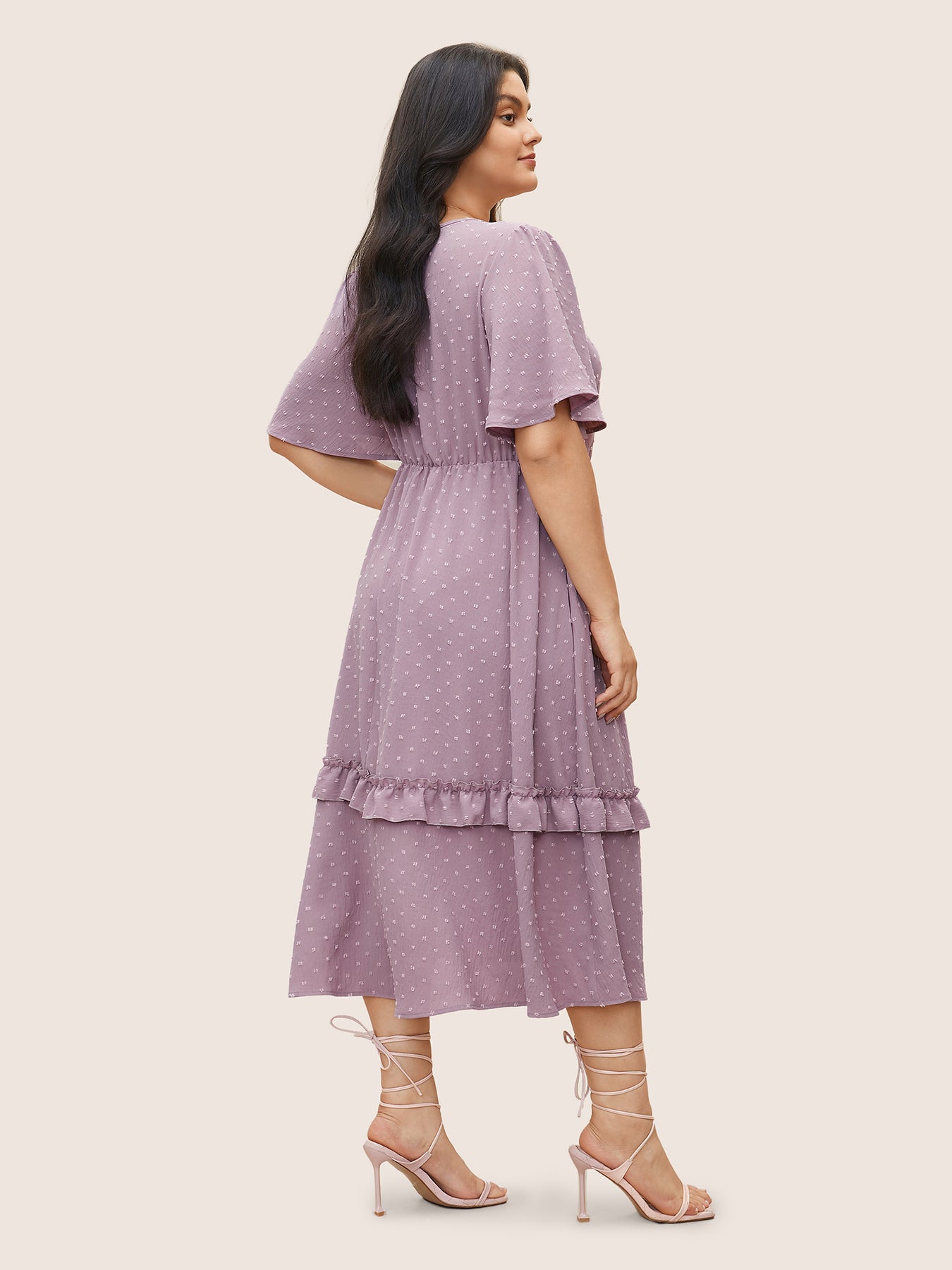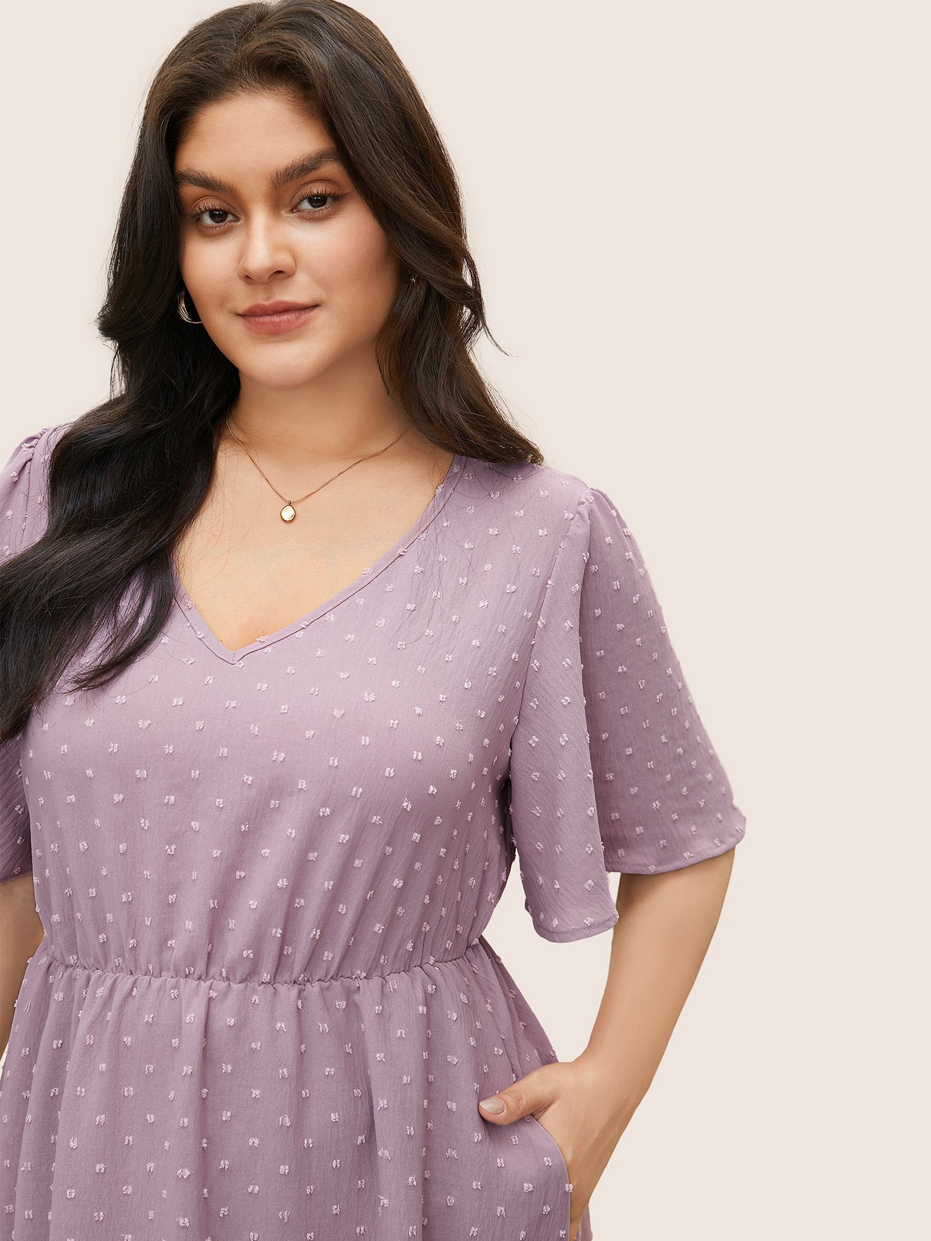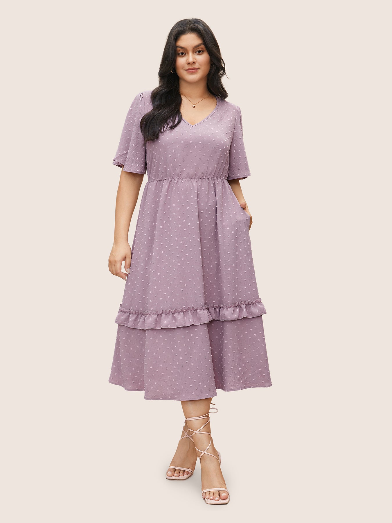 Polka Dot V Neck Pocket Ruffle Midi Dress
