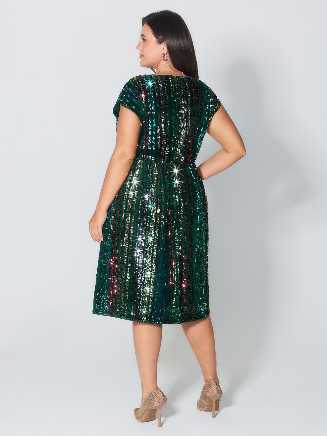 Shimmery Sequin Stripe Cinched-Waist Mini Dress