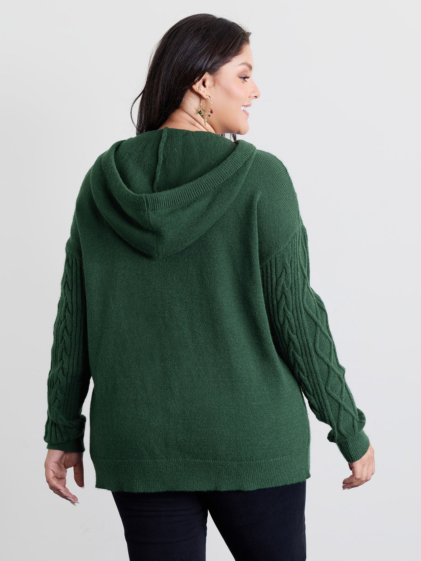 Stretchy Textured Hooded Drawstring Pullover