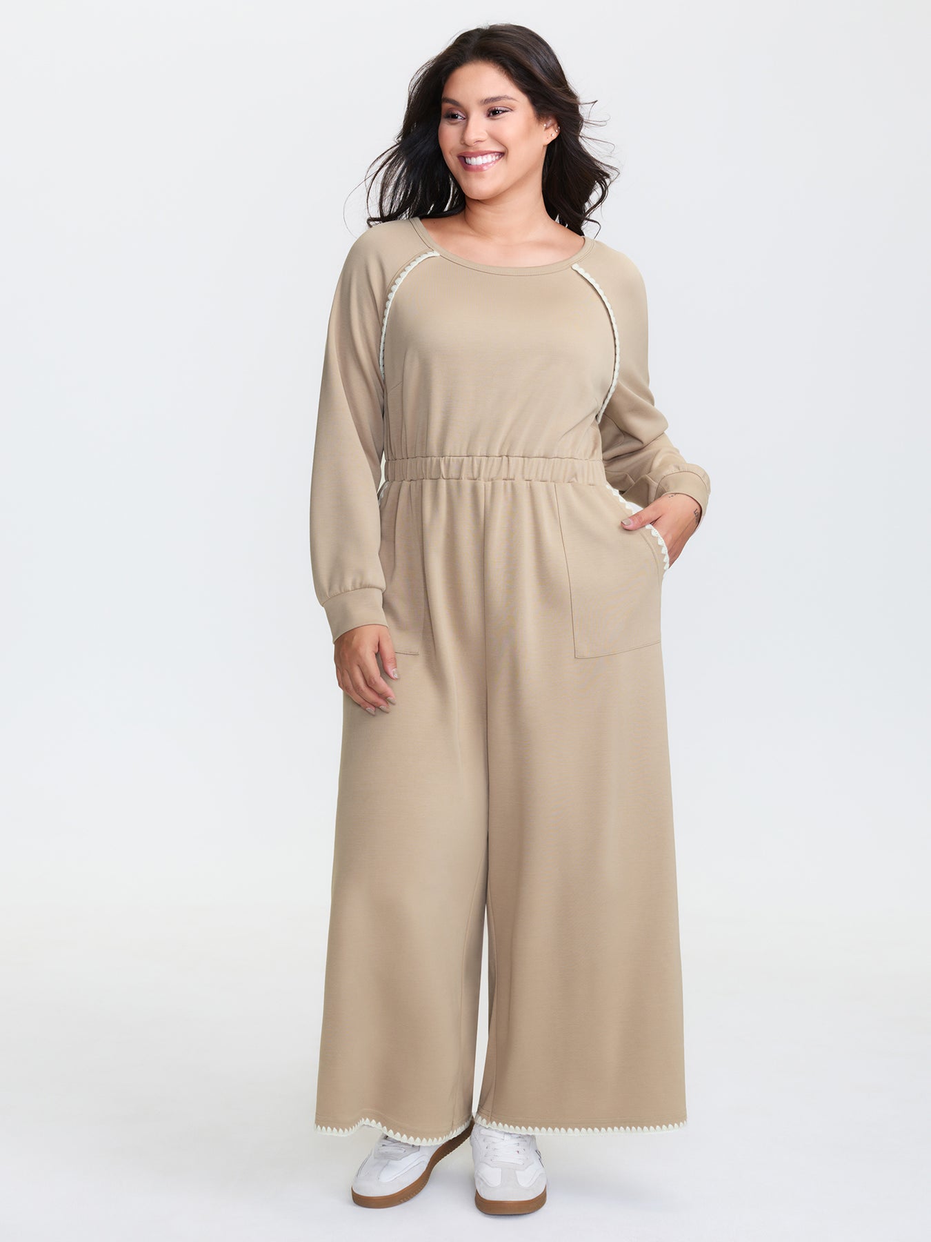 Supersoft Contrast Edges Stretchy Waist Jumpsuit
