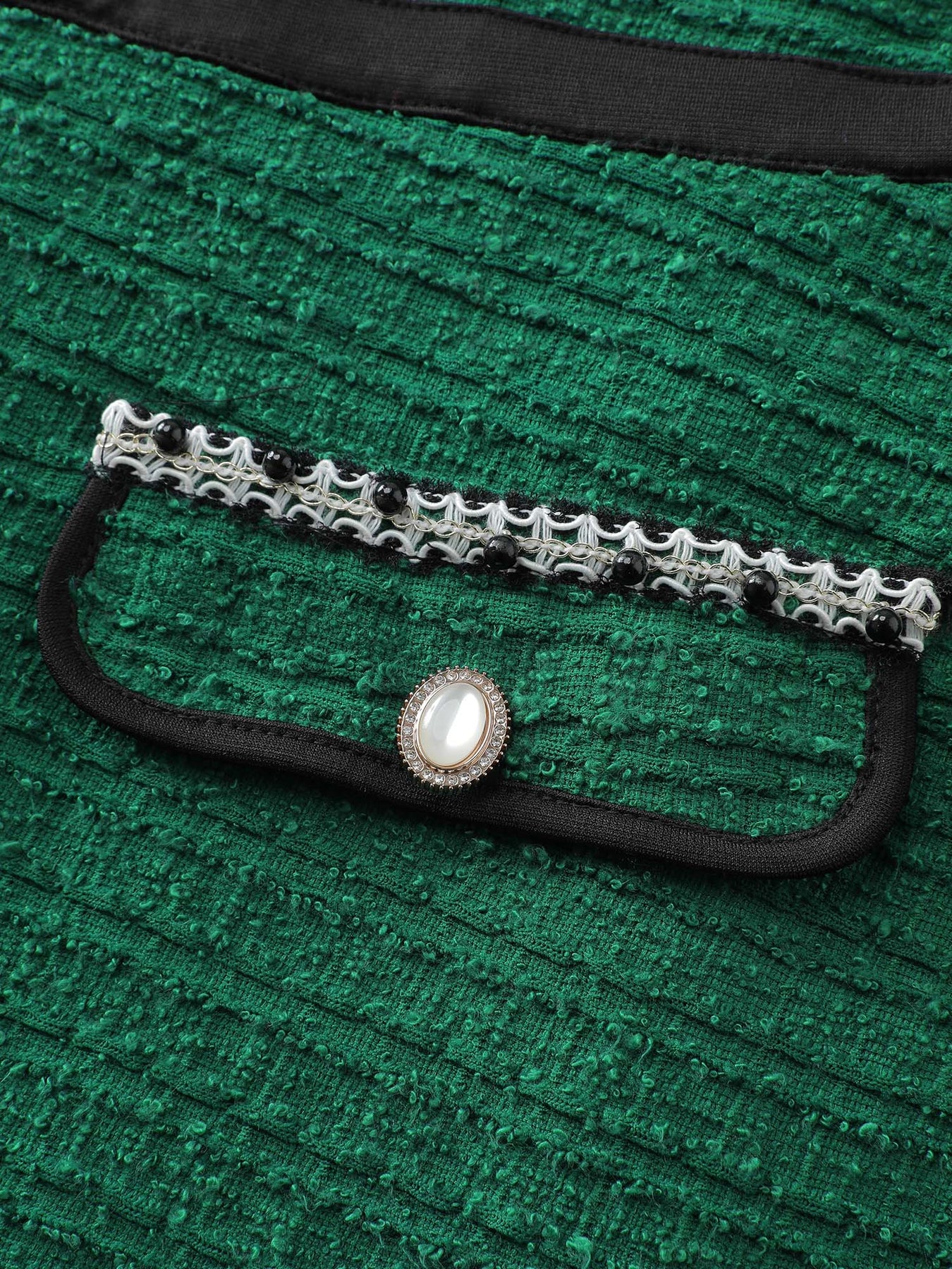 Tweed Stretchy Waist Color Contrast Midi Dress